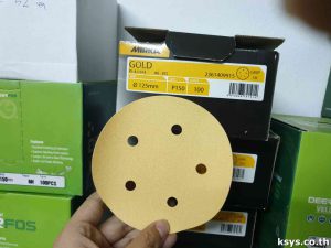 กระดาษทรายกลม Mirka Gold(AO) หลังสักหลาด/หลังกาว 3นิ้ว, 4นิ้ว, 5นิ้ว, 6นิ้ว มีรู/ไม่มีรู